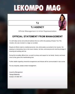 Queen Terc was regarded as one of the promising new voices in the Lekompo scene, a genre that has rapidly gained popularity across Limpopo and beyond. Known for her energetic performances and unique vocal style, she had begun carving out a name for herself among fans who admired her talent and passion for music. Her sudden and untimely passing has left many struggling to come to terms with the loss of such a bright and rising star.