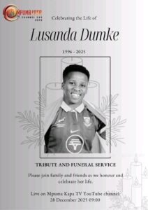 Funeral speakers emphasised that Dumke’s influence went far beyond the pitch. She was a dedicated community advocate and the founder of the Lusanda Dumke Foundation, an organisation aimed at empowering youth through sport, education, and social development.