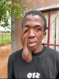 Tshwarelo’s ordeal began when he was just five years old. What initially appeared to be a small pimple on the side of his face gradually developed into a massive keloid as he grew older. Over the years, the abnormal scar tissue continued to expand, becoming more noticeable and increasingly difficult to live with.