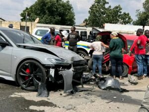 According to acting provincial police commissioner Major General Fred Kekana, two vehicles – an Audi and a Mahindra bakkie – were travelling together along 8th Street when they came under attack by assailants driving a white BMW X5/X6. The Audi driver and one of the Mahindra’s passengers died at the scene. Three of the Mahindra’s occupants were shot and taken to hospital, while two civilians also sustained injuries when their vehicle crashed after losing control during the incident.
