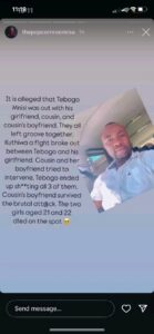 The devastating news has left the family shattered. Their aunt expressed heartbreak over losing both young women in such a brutal manner, while their former landlord, Johanna Mabena, described them as respectful tenants who stayed at her property for five months.