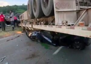 One of the most chilling details to emerge from the crash is that a smaller vehicle became trapped beneath the overturned truck. Eyewitnesses reported hearing the car’s hooter blaring continuously, creating an eerie and distressing atmosphere at the scene. The sound has left many fearing the worst for the person trapped inside.
