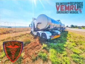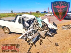 A serious motor vehicle accident involving a truck and a car caused chaos along Delmas Road near the Rietvlei Nature Reserve fence on Thursday afternoon, October 2, 2025. The crash occurred just before 13:00 and drew an immediate response from the Volunteer Emergency Medical Response Unit (VEMRU) and other emergency services.